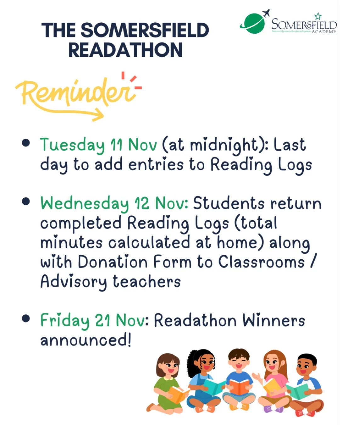 The annual Somersfield Readathon 2025 begins on Monday, October 27. This year’s theme, Global Book Adventure, invites students to travel the world through stories— one book at a time.