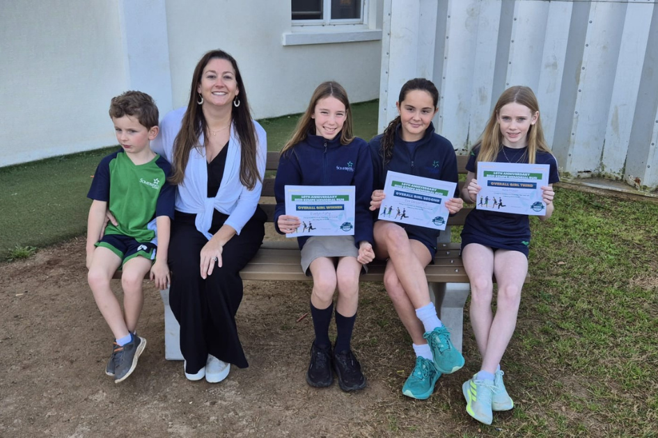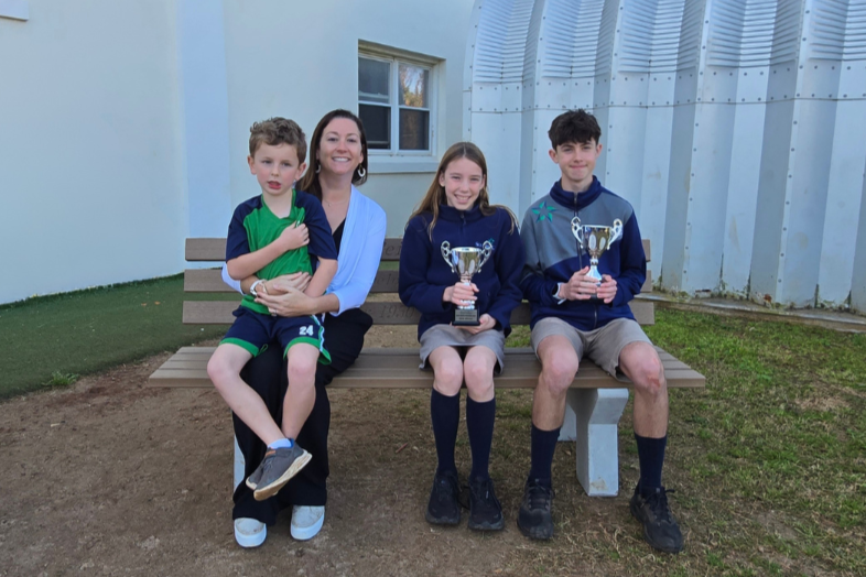 Overall Fastest Boy, Jarred Jones, and Girl, Evelyn Fahy with Zoë Kempe-Gibson and Archer Gibson.