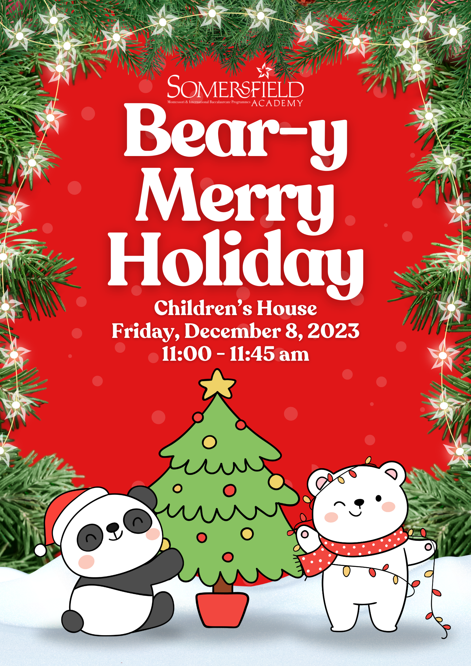 For our Children's House, this year's festive theme is inclusivity, showcased in 'A Beary Merry Holiday.’ Breaking from tradition, our youngest stars take on an actual musical, emphasizing the joyous coming together of bears worldwide to celebrate the holidays. In an effort to promote inclusiveness, every Primary One student who wished for a line got one. We've tailored the script and songs to suit our young performers, and we're 'bear-y' excited to share the results with you. Join us on Friday, December 8, from 11:00 am to 11:45 am, followed by a delightful lunch where parents can join their children in their classrooms.