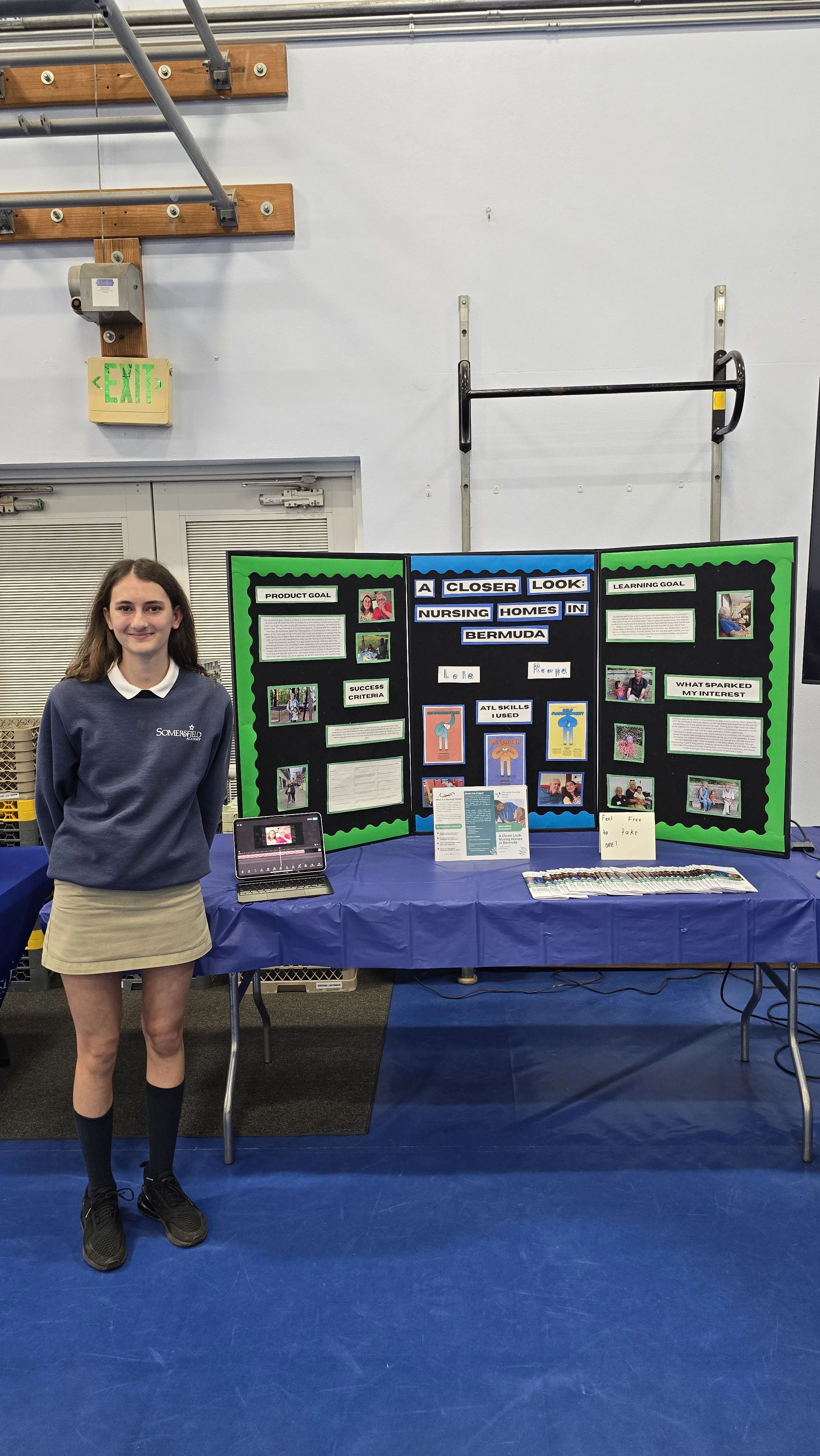 Topics ranged from social issues and creative expression to technical builds and hands-on engineering. Lola Reape explored elder care in Bermuda, drawing on conversations with nursing home residents to better understand their daily experiences. “I wanted to show that older people have meaningful lives, feelings, and needs, and that they deserve compassion, respect, and moments of joy,” she explained, describing a project inspired by her close relationship with her grandparents and her desire to support the community.