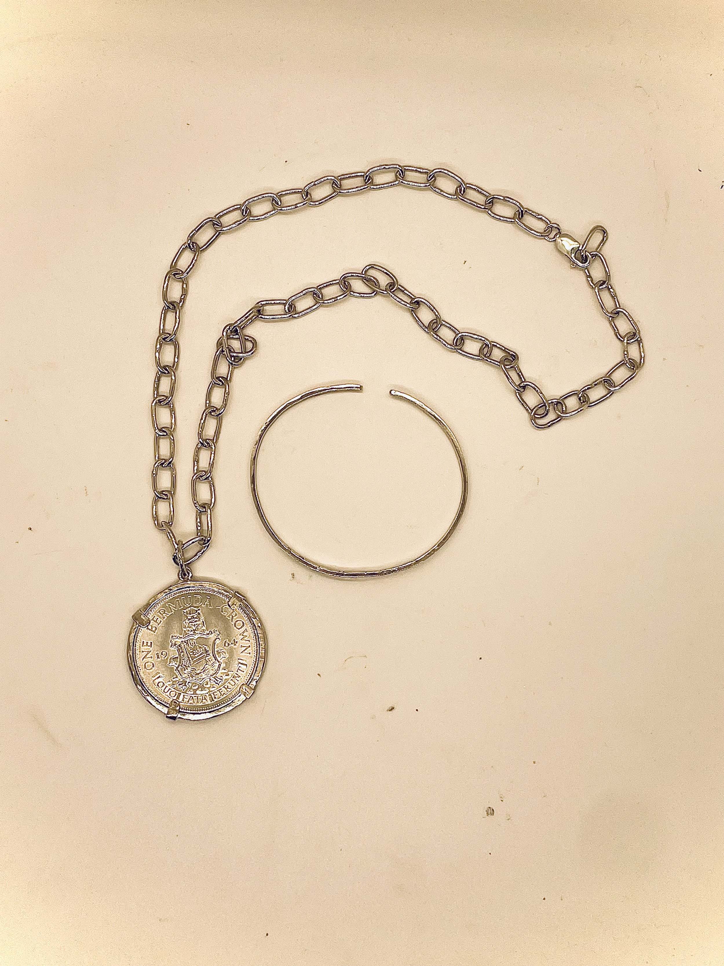 Rocco Adderley said, “My project is about making pieces of jewellery from the Bermuda one crown coin. I made these pieces with the help of Bermuda Jewelry. I created a wearable silver chain with cable links and I created a detachable pendant of the one crown coin to go on the chain. I also made a bangle bracelet with the word “ADDERLEY” on the inside of the bracelet. All of the jewellery that I have made are made out of the One Crown Coin which I had melted two of them and used one as a pendant. I gained an interest in coins when I was shown by my grandfather this coin collection as he was the head of the monetary chair at the Bank of Butterfield and he told me that he doesn’t want these coins to go to waste so I decided to create two jewellery pieces with his permission. I have really enjoyed learning about his coins and it sparked an interest in me which I took further and I have now inherited his coins, so in honour of him I had created this chain and bracelet which will be passed down as a heirloom.”