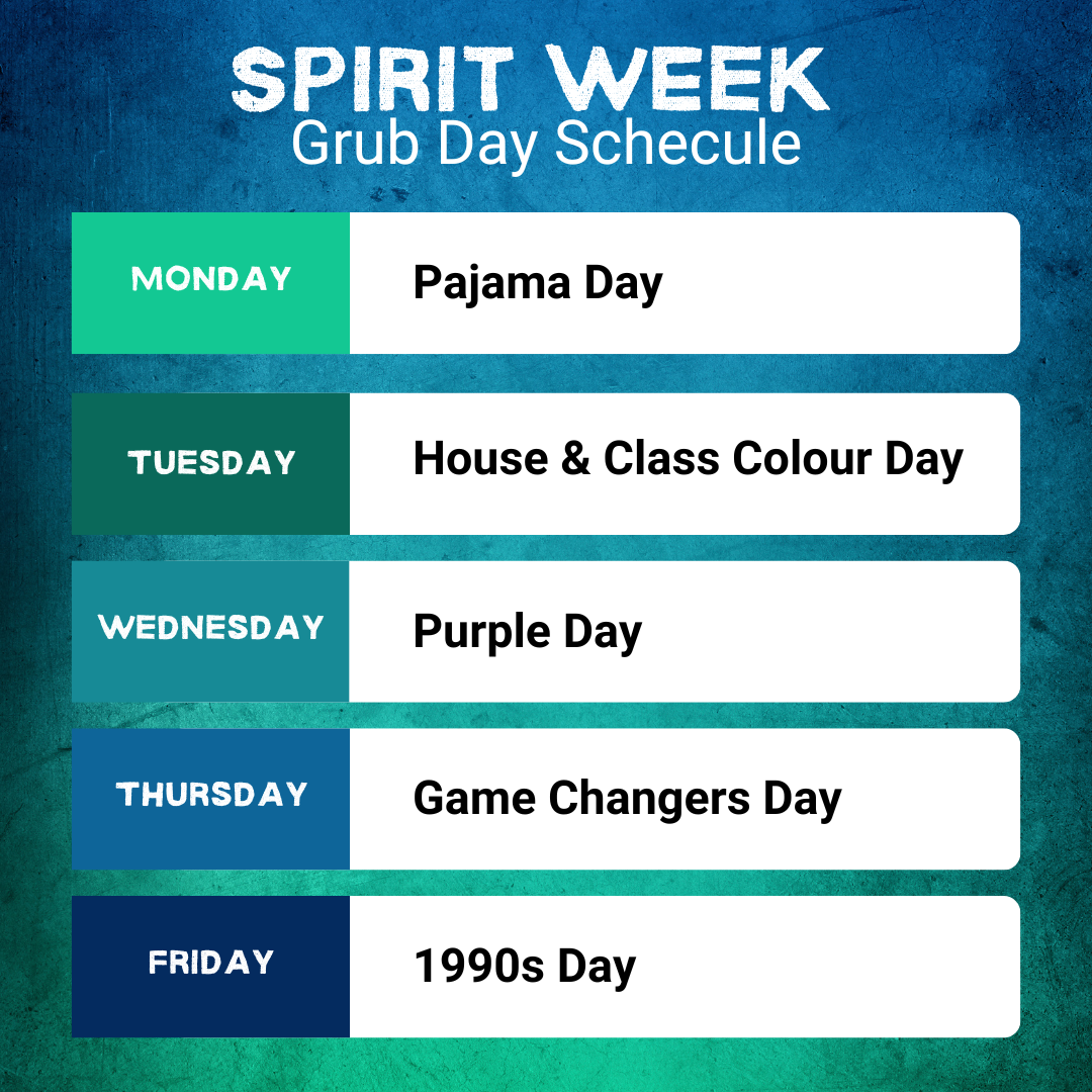 Spirit Week Grub Days: What to Wear, When to Wear It