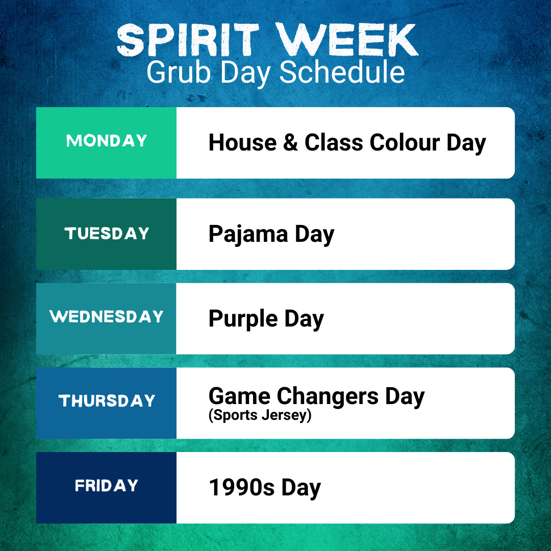 This Grub Day ties into Secondary Sports Day and is a great opportunity to show pride, unity, and friendly competition across the school.